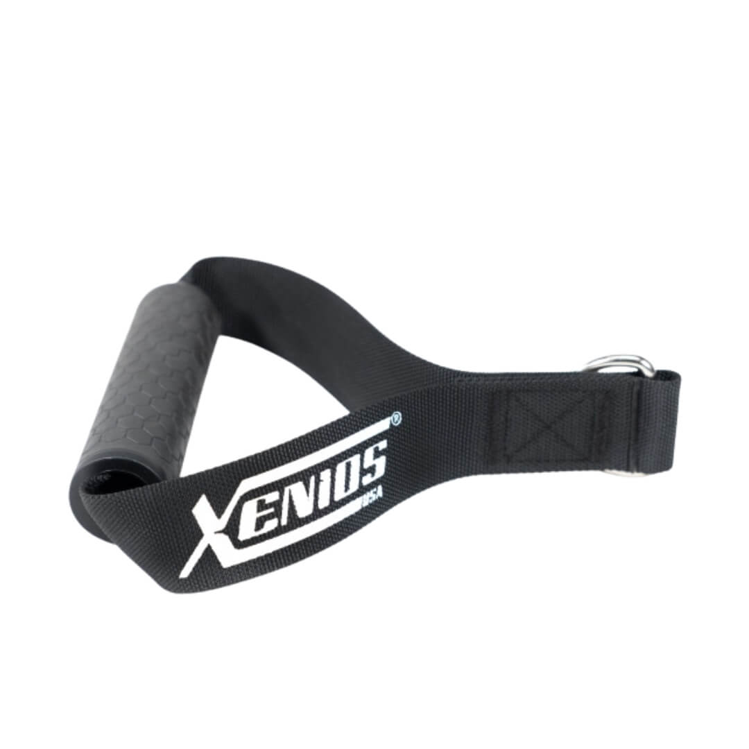 Xenios nailonist stirrup-käepide on mitmekülgne ja vastupidav lisatarvik kaablitreeningseadmetele, mis võimaldab laiendada treeningvõimalusi ja tõhusalt arendada ülakeha lihaseid. Vastupidav nailonrihm tagab pika kasutusea, samas kui käepide on kaetud libisemisvastase polüuretaankummiga, pakkudes maksimaalset stabiilsust ja mugavust treeningu ajal.