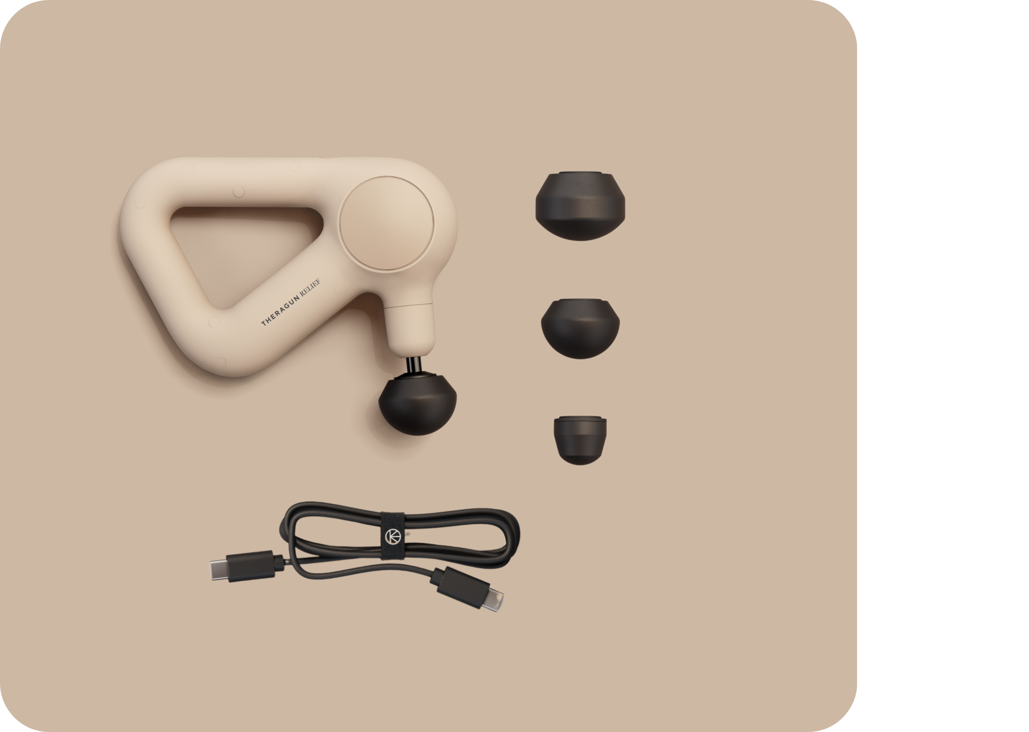 Comfortable everyday massage for everybody, Theragun Relief is an easy-to-use, science-backed percussive massage therapy device. Theragun Relief provides fast and effective relief from everyday aches, pains, tension, and stiffness. With easy, one button control, Theragun Relief is the simplest design yet. Light, effective, and surprisingly quiet, it is daily relief at the touch of a button. With three scientifically designed attachments to target different areas of the body: Dampener, Standard Ball & Thumb, help treat everything from large muscles to tender, sensitive areas.